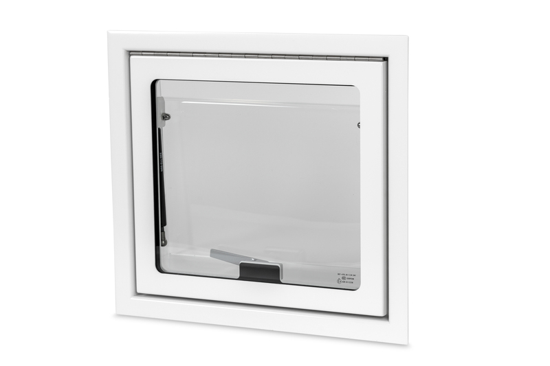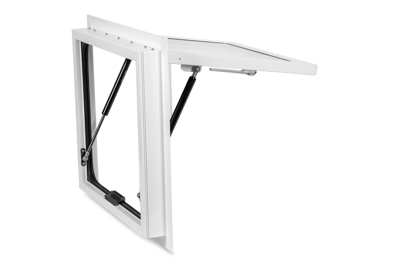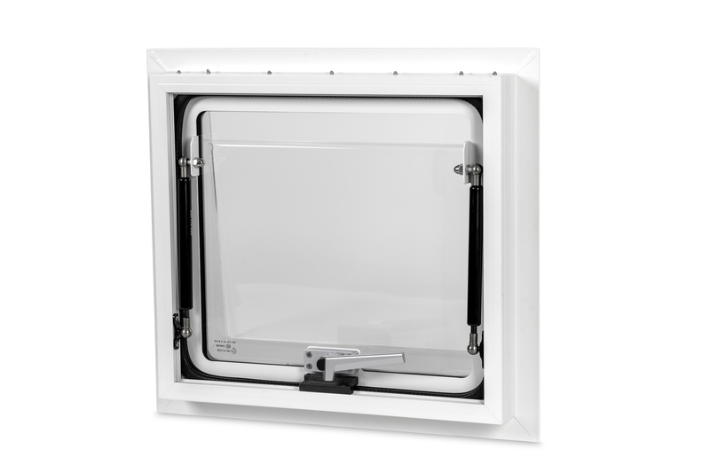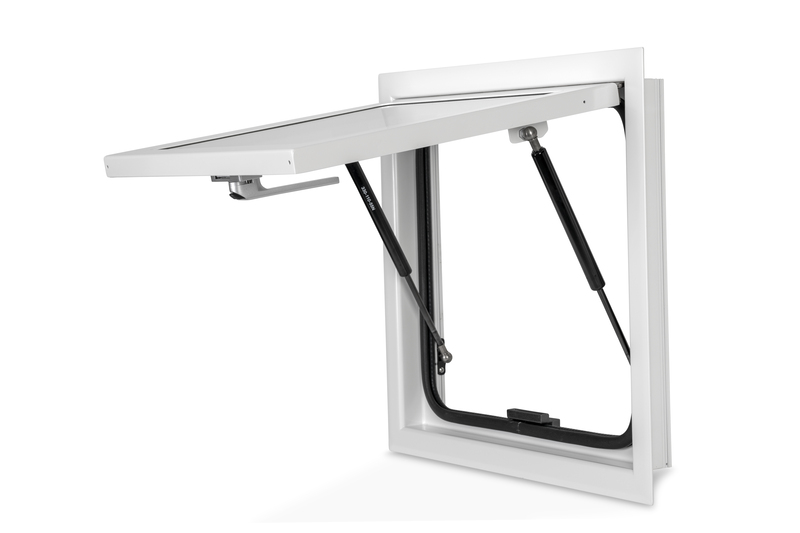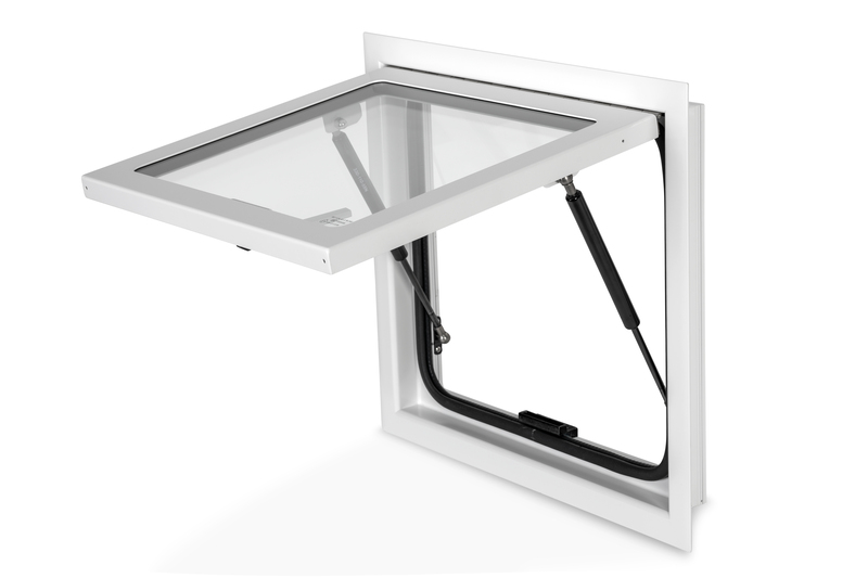 Expedition Ausstellfenster, gehärt.Glas 700x450,weiß, Wandst. 55-90mm